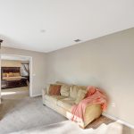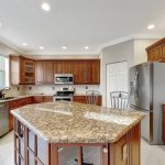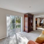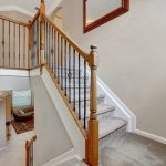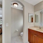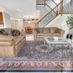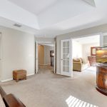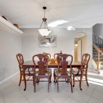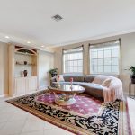 Upon entry, you will be greeted into a bright and spacious living room adorned with high ceilings and ample windows, perfect for hosting gatherings. The open floor plan seamlessly integrates the living space with the dining area and chef’s kitchen, equipped with granite countertops, custom cabinetry, stainless steel appliances, and a sizable island.