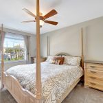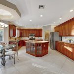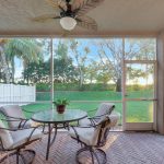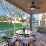 Outside, a screened-in lanai featuring custom brick paver flooring sets the stage for outdoor entertainment, complemented by meticulously manicured landscaping that enhances the home’s curb appeal. Accordion-style hurricane shutters offer peace of mind during stormy seasons.